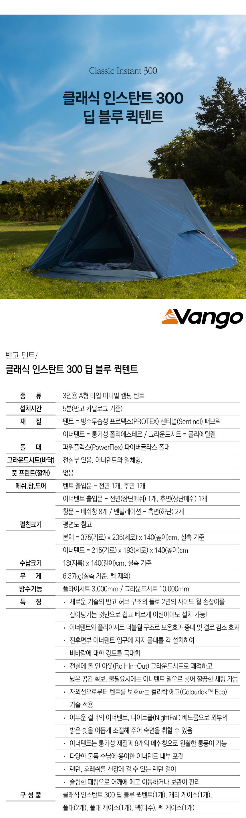 - home > BRAND > ¹Ý°í Vango > ¹Ý°í Ŭ·¡½Ä ÀνºÅºÆ® 300 µö ºí·ç ÄüÅÙÆ®