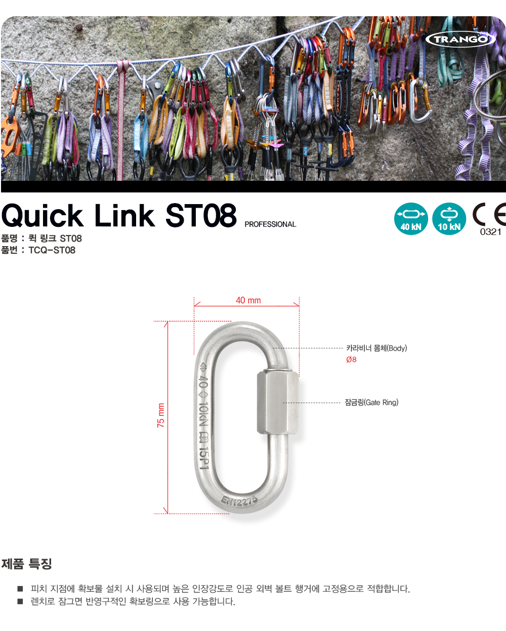 | ÀÎÁõ | CE (EN362, EN12275), UIAA |