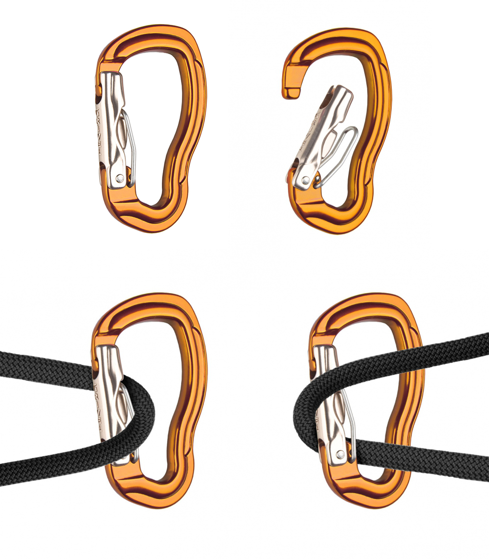 The TAU k12L is a modern carabiner with the new innovative WIRE-LOCK system: