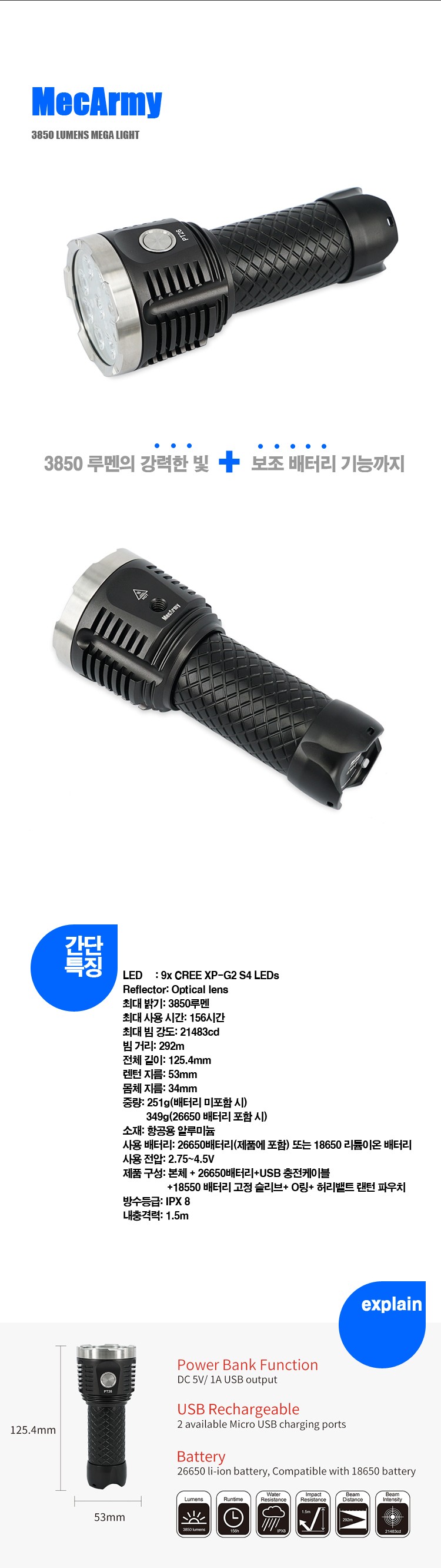 ¸Æ¾Æ¹Ì MECARMY3850 ·ç¸à ¸Þ°¡ ¶óÀÌÆ®3850 LUMEN MEGA LIGHT USB